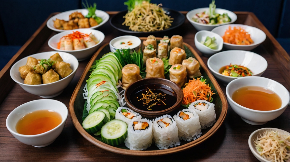Món phụ: Nem rán, rau củ luộc chấm kho quẹt